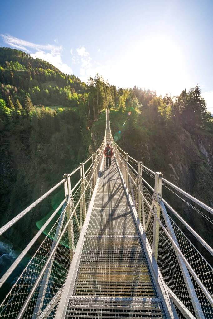 Die Hängebrücke über der Iselschlucht ist das Highlight am Iseltrail.
